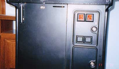 The retrofit was primarily a matter of creative component placement and some new wiring. I had to extend the wiring for the power and reset switches, which are mounted in the lower coin door (I thought about making it easier to turn on the machine, but then realized that with two small boys I wanted a lockable solution!)