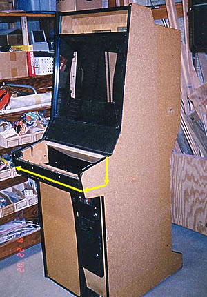 Construction Details Before: An old Atari Roadblasters game, basically just an empty shell, about the only hardware remaining was the coin door and the original speakers. This is an Atari System 1 cabinet, which was used in several Atari games, including Marble Madness, RoadBlasters, Indiana Jones, and Road Runner. Note that I didn't have to strip what remained of the original melamine paint, it actually just fell off in large sheets! After: Ready to play just about any arcade game ever made...