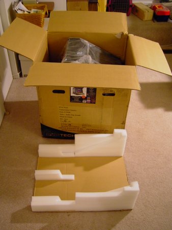 Naturally, my first thoughts were “Oh no, not another cheap Midway-style Cabinet!” – but after my initial skepticism, I realized that the cabinet seemed to be well built. Unfortunately, I didn’t have much time to spend with it, as I WAS shopping with my wife, but I left the store being impressed. Later, I was informed by James that RetroBlast! had scored a demo unit, upon which I obviously called “dibs”. A few weeks later, waiting at my door were TWO PVG Tech tabletop demo units (Taito and SNK NEOGEO), ready to be put through their paces. Ron's Wife Loved this Part (x2) Upon opening the packaging, each unit appeared to be safely nestled between custom foam inserts and protected by a large plastic bag. At 60lbs, most shouldn’t require assistance in lifting the unit out of the box, just be sure to place it on a sturdy table! Aside from the cabinet itself, the only other items in the box were a standard PC-style power cord and a generic instruction manual. As the instruction manual is essentially a manual for their entire line of cabinets, it only contained information about general operation, such as powering the cabinet on, adjusting the volume, and navigating the main menu. I would have liked to have seen a bit more information in the manual regarding the specific cabinet’s selection of games, and perhaps a bit of history on each selection. Power cord and Instructions