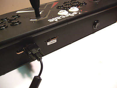 The manual is fairly detailed, including nice charts showing the key layouts for the X-Arcade when it is used with a PC or game console. It does skimp on the same MAME-related details the Hot Rod manual did, such as how to exit a game or insert a coin (these details are mentioned in the FAQ on X-Gaming's web site, however!) The X-Arcade comes with an exceptionally generous lifetime warranty, for both parts and labor. In addition, they have exceptional customer support options, including a toll-free technical support phone line, email support, and a web site that includes a lot of nice help and even includes a live support chat feature. A 30-day "no questions asked" return policy speaks of the confidence they have in their product. Fit & Finish One of the first things I noticed with the X-Arcade unit after getting it out of the box was the little "X-Gaming" logo embossed on the plastic disc that goes on the shaft of the joystick to cover up the mounting hole: it seems X-Gaming uses their own custom-manufactured joysticks and buttons, which are very similar to the Happ Controls parts in most aspects. There are twenty buttons on the X-Arcade, with an 8th button being added to the button layout for both players. (There's also a 21st button on the back dedicated solely for programming the unit, but I'm not counting it as it isn't related to gameplay). I did notice that the joysticks and buttons felt (and sounded) slightly different: the joystick tops were smoother and less textured than the Happs, with a bit of plastic "flashing" around the center of the handle that was a tad uncomfortable. The buttons also "pinged" instead of "clicked" when pushed. These details, it should be noted, are just a "joystick connoisseur" being picky, as both the joystick and the buttons worked fine in gameplay. I don't know how durable these controls are compared to the Happs versions, but with a lifetime warranty, it probably doesn't really matter. The X-Arcade is constructed solidly of wood, and all exterior surfaces are covered with a textured black vinyl or plastic similar to the top surface of the Hot Rod. Style-wise, I definitely prefer the black surface and the sporty "X" logo that runs up the middle of the controller surface. My only concern with the vinyl covering is where it bends over the bottom edges of the sides, as I wonder if the covering may tend to wear loose in time. The joysticks are mounted using very small, low-profile black bolts, a definite improvement over the Hot Rod's bolts, but not as nice as not having any bolts at all. A red LED sits in the upper right-hand corner of the panel, a nice touch that shows you if the X-Arcade is properly connected to your system (the LED is also used in programming the unit, more on that in a minute). Turning the unit over, you immediately notice that each of the six mounting screws holding the bottom panel on are surrounded by little rubber feet. This "six-foot" setup makes the X-Arcade very stable when used on a table or floor. Inside the unit things are just as sleek and styled as the outside, at least from an enthusiast's eye: good wire bundling, routing, and solid connections. The X-Arcade is a lower-profile controller compared to the Hot Rod (4" vs. 6"), so I really doubt you could mount any additional controllers (with the possible exception of an Oscar Controls Model 3 spinner).