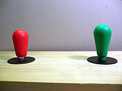 Click here to launch the sound and motion comparison in a separate window The J-Stik has two handle types, the Oval-top and the Balltop. The Oval top sits very low when mounted in a wood control panel — I'd definitely recommend routing out some of the wood underneath to raise it up a bit. Height definitely isn't a problem when installed in a metal control panel.