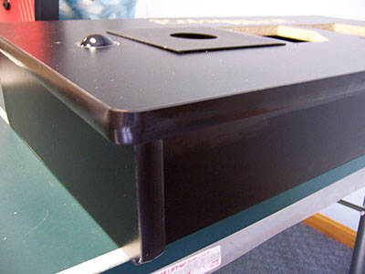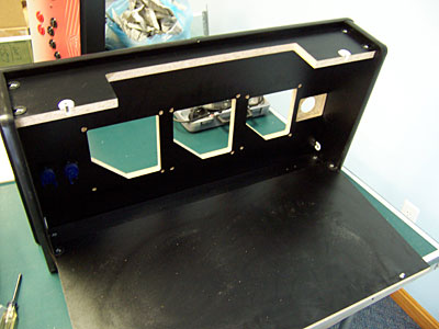 The Results The results are, at least to this arcade enthusiast, breathtaking. The panel was perfect: constructed of laminated .75" MDF, with every hole and cut precisely where it should be. The cuts were so precise and crisp, in fact, that the edges were so sharp that I cut my fingers when holding the panel from the back access hole!. This isn't a criticism of the panel, but a compliment to the precision of the CNC equipment used to cut out the panel.