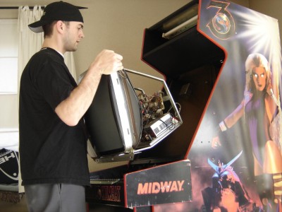 Before going any further, you'll need discharge the monitor (using the discharge tool) by attaching the clamp to the monitor's metal frame and inserting the tip under the anode cap. If you are unfamiliar with the dangers involved in discharging a CRT, I highly suggest you read up on the the subject. Getting zapped by 20,000 volts would not be the best start an otherwise fun project. Below are a few good links to demonstrate how to discharge a monitor safely. Check 'em out: http://www.instantarcade.com/discharge.php http://www.arcadegames.net/sightsound/discharge.ppt http://www.stickycarpet.com/pinx/md.html **Remember** 1. Unplug the monitor from the wall