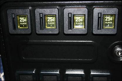 Although some of the buttons share the same key assignment such as Player-1 Button-1 and the button labeled Select, I think that the overall user-friendliness is greatly improved. Coin Door Coin-Up The second thing I did was wire up my Coin Door so that by activating the coin return it triggers the micro switch to add credits as if a coin were actually deposited. I used Custom Labels to indicate which player was for which button.
