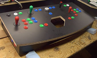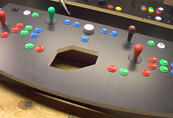 Second, by moving the trackball into the center of the panel and putting two buttons on either side, I've inadvertently put a button right under the player 2 joystick. This means your wrist will be right over the button, and an accidental press is almost guaranteed. The design did have its good points, like the ideal Asteroids button layout. Unfortunately, to get that layout I messed up several other very important parts of the panel. A MAME panel is an exercise in compromise, as trying to enable a single control panel to play 4,000 games is nearly impossible. I'm thinking of a swappable-panel setup, which the new SlikStik cab would easily accept. All I need to do is come up with a common latching system and I'm set. (Well, that and designing and creating all of the swappable panels!) In the meantime, I've gone back to the tried-and-true, my self-modified SlikStik Classic design that I used on the MAMEframe: