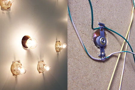 David's custom lamp sells for $49 (+$6 shipping) on eBay (search for seller "yelobird1"). It's a bit pricey, but I really do like the glowing logo, and the cutouts even allow more light on the miniplayfield, an unexpected plus. 455 light replacements in the backboard When the Twilight Zone pinball was released, it used six 545 flasher bulbs behind the translite, which helped the "starry night" motif in the artwork. Unfortunately, these bulbs are now extremely hard to find and very expensive if you do manage to find them. The solution is to replace the 545 flasher bulbs (basically a flashing version of the 555 bulbs) with 455 bulbs, which are still available and much cheaper. The only problem? 455 bulbs don't use the existing wedge sockets, but instead use #44-style bayonet sockets. This means a bit of soldering and stapling, as you need to remove each of the black wedge sockets in the backboard, then staple in an E-120-176 small bayonet lamp socket, then solder the existing wires back to the new socket.