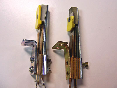 There have been some aftermarket attempts to reinforce this target by propping it up with steel rods or stiff wire, but I feel that the best solution by far are the newly redesigned and reinforced targets from Steve Young's The Pinball Resource. Featuring a heavier gauge mounting bracket and an "L" shaped metal supporting brace, this target is built for serious abuse. The Pinball Resource has two versions of this enhanced bracket: Williams part number A-18530-6E (the "E" is for "Enhanced"), which is used for the yellow greed target, and A-18530-2E, which is used for the green "clock" target.