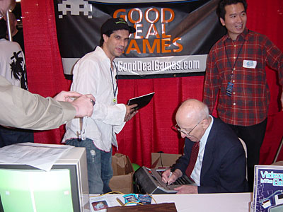 If you don’t know who he is shame one you!....see his site for detail at: http://www.ralphbaer.com/) My thoughts: Ralph is so cool. What a nice guy. He really is the true father of video games and it was a pleasure to meet him. He was kind enough to sign anything that folks gave him and I regretted that I didn’t think to obtain something that he invented to sign. I witnessed Tommy Tallarico having great time with Ralph getting what appeared to be his entire Odyssey computer collection autographed!