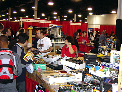 I didn’t make note of the names of some of the vendors…but some of the booths looked like they were literally selling junk they found in someone’s basement. I’m not exaggerating….we’re talking dirt encrusted, broken junk. I’m sure there may have been a gem or two if you were willing to sort through this stuff…but I’m really not kidding. I had to wash my hands a bunch of times after “digging” through some of the vendor’s boxes. Oh well. Another scary trend this year, that differed from last year….was the outrageous prices some vendors were asking for items. One example was what appeared to be a really run down and depilated Vectrex with no games for $110!. I wouldn’t have paid more than maybe…MAYBE…$25.00 for this particular unit considering the condition. I was unfortunately getting the impression that some possible price gouging was going on to hit on unsuspecting regular "non-gaming" people milling around wanting wandering into the convention from the NBC consumer expo portion of the show. This was something that I had feared from the beginning. TOURNAMENTS & EVENTS Below is a list of the on-going events and tournaments that were set up to provide a continuous stream of entertainment throughout the 2 day event. I have noted any interesting items of note under some of the categories below— Event VGXPO’s Lifetime Achievement Awards Ralph Baer, the ‘father’ of videogames, was awarded the VGXPO’s first Lifetime Achievement Award. Discussions A Parents Guide: Buying VideoGames for Your Kids ratings system. VideoGame Education for Kids in 6th through 12th Grades: VideoGame Education: College Degrees for Games VideoGame Journalism VideoGames in Asia Hot Games for 2005 – Take a look at what’s coming out for the 2005 holiday season. Workshops VideoGame and Comic Book Character Design Workshops - The VideoGame.Net Experience booth will hold four different workshops throughout the weekend. Panel The Future of Sci-Fi Comic Books, Cards, Action Figures & VideoGame Collecting The Game Makers Round Table – Videogame industry veterans will be on hand to talk about game making and how its evolved over time. VideoGame Fan Films The Next Generation: XBOX 360, PlayStation 3 and Nintendo Revolution Interactive Atari History – Get an insiders view on how Atari built a videogame empire. VGXPO Trivia Center – Think you know your game trivia? Autographs and Book Readings Meet Bill Kunkel and Ralph Baer Event Fan Choice Awards COSplay contest My thoughts. Wow. There are some really bold characters out there. While not as interesting or wild as some Japanese CosPlay groups I’ve seen, this was kind of fun to watch. Show Feature LAN Party – Are you a PC LAN gamer? If so come out and show us what you’ve got. Nintendogs Party – The Dogs are in the house at VGXPO. Bring your DS and your Nintendogs game because its party time. Role Playing Open Tables Nintendo DS and Sony PSP Meetups VGXPO Tournaments – Are you a competitive gamer? VGXPO will be holding tournaments for Halo 2, DDR, Super Smash Brothers, and the VGXPO Retro Challenge. My thoughts: I’m sorry to say that considering this was a Retro Gaming convention…the biggest draw seemed to be the set up of Xboxes, Gamecubes, PS2’s etc with a large crowd of 20 somethings. There was a line of about 3 deep anxiously waiting to play in these “tournaments”. Sigh…kids, they just don’t appreciate the classics. NBC 10 Consumer Fest My thoughts: This was the most under-developed “expo” I have ever seen. The booth layout appeared haphazard and there was no real overall theme to the event. They literally had everything from financial advice to refitting your bathroom with new tiles or refinishing your basement. Weird. OVER ALL THOUGHTS/IMPRESSIONS Ok. I have to admit: While I was definitely let down overall compared to last year’s exclusive Retro Philly Classics (i.e.- retro gaming only, no NBC affiliation) I did manage to have a good time, pick up some goodies, and meet some very nice people. I personally, would love to see this go back to being an exclusive paid entrance event. I think something was really lost by the NBC affiliation and the addition of the 2 other cities. My feeling is that there were very likely some vendors and guests that didn’t bother attending the Philly Expo because perhaps the Dallas or Washington DC was closer to them so they skipped this one. The fun and impact of a smaller venue (this year’s expo was spread out and didn’t have the same impact of last year’s event which was in a smaller space) was lost a bit and so was the excitement of a gamer only event. There really just weren’t enough vendors/booths to fill the space they had.