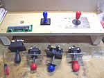 Happ Controls 49-way Joystick, Groovy Game Gear GP-Wiz49, Mark Oates' 49-way Rotary Adapter, and Druin's Rotary Board Interface