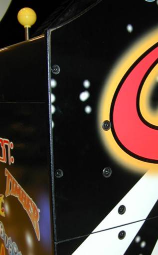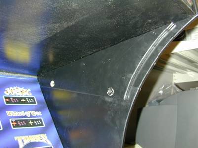 A close look at the cabinet’s sides and overall structure reveals a highly segmented construction. From the pictures below one can see where various portions of the game are fastened to adjoin the unit’s many parts. Also easily spotted are the many screws used to secure the components. Sadly, those fasteners can also be seen dotting the “finished” product.
