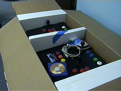 Quick Jump: SlikStik Classic Unit Note: This roundup includes the SlikStik "Classic" unit, when in all fairness the best match available in the SlikStik product line to the Hot Rod and X-Arcade arcade controllers would be the "Fighter" unit. That said, the Classic and the Fighter units are the same size, and the only major differences are that the Fighter unit uses Happ Perfect360 optical joysticks instead of the Classic's Happ Competition joysticks, and the Fighter doesn't include all of the Classic unit's "extras" like a trackball, spinner, 4-way joystick, and asteroids buttons. All other Fighter features (size, construction quality, materials used) are identical to the SlikStik Classic unit. Specs Size: 35w x 17d x 4.75h (89 x 43 x 12 cm) Buttons: 27 (31 with optional dual pinball buttons) Interfaces: PS/2, USB Programmable: Yes (Unlimited programmable settings by loading different "profiles") Software: Installation CD with manual, programming software, and MAME controller profiles. Warranty: One Year, 30-day money back guarantee In the Box The SlikStik Classic comes packed securely in a custom-fit box, with custom foam pieces keeping everything snugly in place (a bit too snugly, in fact, as I had to cut apart the box to get the SlikStik out, it was so tightly packed!) Included in the box were the SlikStik unit, a PS/2 to USB adapter, and an installation CD (which includes the manual in PDF format, programming software, and MAME controller profiles for each model of SlikStik.)