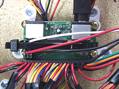 Treyonics grounds all the switches via a terminal strip, with "daisy-chained" connectors on each set of buttons and each joystick. This is a unique technique which differs from SlikStik and Ultimarc’s “daisy-chained” ground connectors for all of their ground connections. Everything in the Devastator II is controlled by Ultimarc’s MiniPAC, an “all-in-one” encoder that handles keyboard, spinner, and trackball encoding in one tiny unit. I believe Treyonics is the first control panel maker to use the MiniPAC, and it allows the Devastator II to interface with just a single USB cable.
