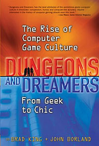 When a childhood friends and fellow D&D aficionado, Tom Zahoric, picked up a Commodore 64 and gave me the grand tour, I was hooked. One night we played Zork until dawn trying to sort out the elusive wordplay needed to advance in the quest. Suddenly all of my RPG efforts started to shift towards electronic pursuits. I began plotting to write a program that would allow me to play Car Wars on the C64. I made good progress and actually had a BASIC program that would allow one to generate a car’s specification sheet on the computer. By then games were coming out once a week for the C64 and I became a consumer rather than a publisher. My decidedly geeky history in mind, imagine my pleasure when I received and read Dungeons & Dreamers: The Rise of Computer Gaming Culture from Geek to Chic from McGraw-Hill/Osborne press. (I’m Chic now? Somebody PLEASE tell my wife!) The authors are not here to tell the tale of pale-skinned loners locked in the furthest reaches of their Mother’s basement churning out computer code with fantasy flare. This is the story of community gaming. From the early BBS systems to the internet as we know it today, many saw that the teamwork and interaction of the role-playing games would be recreated and enhanced by porting the quests to the digital world.