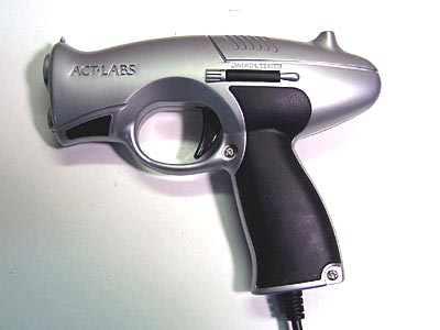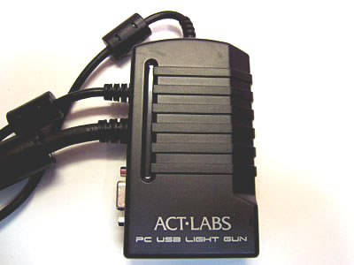 Quick Jump: ACT-Labs PC USB Light Gun In the Box The ACT-Labs light gun comes as a one-piece affair: everything is permanently attached to everything else. The gun is attached to the control box via a 6' cord, which also has a short (but thick) video cable and a short USB cable attached as well. The gun comes with a CD that includes some brief online documentation and a test program for the gun. The CD also includes links to a number of online games, but quite a few of the links were dead. Fit and Finish The ACT-Labs gun is a mixed bag when it comes to quality: some parts are better than others. The control box is exemplary, with a high-quality video cable and good construction. The light gun, however, feels cheap - the plastic flexes and it just doesn't feel "solid."