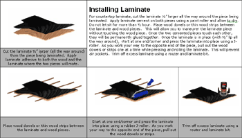 Before the cabinet plans go into the step-by-step details of building the cabinet, you're first presented with some nice tutorials on how to countersink holes and how to properly apply laminate. As these are skills that not every "handyman" may have, I was impressed that the procedures were included here.