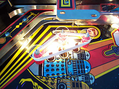 I removed the new slingshot plastics from my pinball machine, and replaced the small metal washers with the new clear washers. It's interesting to note that none of the washers actually extended out beyond the original plastics, except for one tiny area on the left slingshot.