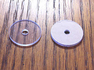 The plastic washers have the advantage of being both strong, flexible, and clear - they're strong enough to withstand the impact of an airball strike, flexible enough not to damage the pinball, and transparent so that they don't interfere with the lighting of the plastic. I ordered several of the plastics, and received them via priority mail in just a couple of days. The washers are cut from 1/16 polycarbonate (Lexan) plastic, and still include the protective covering on both sides. The edges were a bit rough, but can be easily buffed and polished.