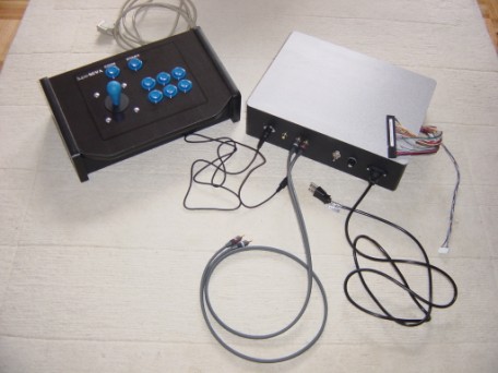 MAS Systems SuperGun Slideshow How well does it work? Video - Excellent. From the first time I hooked it up to my SVideo on my Sony TV I was really impressed. The colors really pop, the visuals are very crisp and I find the video to be arcade monitor perfect. The SuperNova is missing the color pots that are featured on the GW unit, but I have to say that the plug/play color quality is higher than the GW unit making it much easier to use as you don’t have to do color adjustments. Sound -The sound quality is good, but I do get some crackling when the music gets loud or there are very loud explosions. This may be due to the built in speaker bleeding off some of the signal. The SuperGun itself has a built in 3” speaker that’s wired to be always on. I guess I could see the point of needing this speaker if you’re using a true arcade monitor (or other monitor without audio) but in regular use it’s kind of annoying. It would be easy enough to simple clip the speaker wires (and use quick disconnects to reattach later on); but again I don’t see the point. The built in speaker works fine (it’s not that loud, but an OK volume) in the event that you are using it as your primary sound source though. Build - Very good. I was immediately impressed by the overall quality of the physical components and the parts used. It looks like they used a nail gun to put it together and they did a neat job on the build. The physical design of the SuperGun itself isn’t the sexiest and could be more interesting looking, but they did use standard ¾ MDF and leather textured T-Molding on the controllers which I like a lot. The machine itself is covered with a basic grey speckled formica that’s a bit boring to look at, but it’s a durable surface. The sides of the controllers are painted with black and what appears to be a Ms. Pac Man blue. There’s a slight texture to it and I would have preferred a nice smooth surface personally. On the physical parts that aren’t in view there are areas of extra paint and overspray (from spray paint) but again these are minor nit picks. The surface of the joystick control panel is some sort of very glossy material in black. The upside is that it looks cool. The downside? It shows off sweaty hand prints. I think I may upgrade this with a standard control panel overlay at some point. Joysticks - Happ Competition Joys and buttons. Not much else to say. These are real arcade parts and perform at that level. The joystick is mounted using standard bolts that aren’t the nicest, but they are super secure that’s for sure. I would have preferred black ones, but that’s aestheics not a performance issue. This joystick will take a lot of abuse. Internally, they used scotch tape to hold down the excess wire. I would have preferred to see hot glue or cable ties, but again this should not negatively effect the unit as the connections as mentioned are soldered securely. I have opened it up (see photos) and the wiring is neatly done. I would have preferred to have seen at least 18 gage wiring, but it is neatly wired with the connections being securely soldered into place rather than the usual quick disconnects you see in items like this for home use. I also happen to like the physical design. It feels very comfortable on a table (it has rubber feet to avoid slips during active play) and while a bit large feels OK on your lap. It really reminds me a lot of the X-Arcade solo in physical size, weight and build/design. Hooking it up - Not much to say here. You have the choice of SVideo or Composite video; and RCA jacks for stereo out to your TV or home amp. The power cord is a standard PC power cord and the powersupply seems much more substantial than the Happ style one in the GW SuperGun. Also, this one has no fan so it’s much quieter than the GW one which I appreciate.