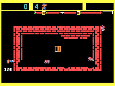 Zoo Keeper (1982) places players in the role of Zack the Zoo Keeper as he tries to rescue his girlfriend and put all the animals back in the zoo. Levels vary between running around a rectangular area, building walls to keep the animals in the cage before they break out and “Frogger-like” levels where you jump on horizontal moving platforms while trying to make it to the top of the screen to save your girlfriend Zelda. It is a fun, but very simple game that I enjoyed and will return to.